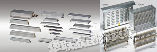 ①ROP型功率電阻器組,由纏繞有電阻絲的不銹鋼框架組成,成組組裝并串聯(lián)或并聯(lián)(取決于最終歐姆值),安裝并固定在鍍鋅鋼制外殼內(nèi)/底部和側(cè)面均開(kāi)有散熱縫。