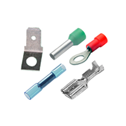 在電氣安裝技術(shù)中,電纜接線片通過(guò)螺釘(環(huán)、叉形)或插頭(扁平連接器)實(shí)現(xiàn)電纜和絞線的電氣連接)。通常需要線端套管將電纜固定在端子中。實(shí)心導(dǎo)體也可以通過(guò)將電線彎曲成孔眼直接擰上。對(duì)于絞合線的螺釘緊固,還有壓接環(huán),其中絞合線以環(huán)形插入。但是,也可用于此目的的焊接接線片不稱為電纜接線片。設(shè)計(jì)為環(huán)形或叉形的電纜接線片可通過(guò)螺釘夾緊接觸導(dǎo)電組件,螺釘連接到該組件并夾緊接觸一個(gè)和/或多個(gè)電纜接線片(管狀電纜接線片等)。插座的優(yōu)點(diǎn)是它們可以用來(lái)快速輕松地進(jìn)行電接觸。例如,插座用于車輛中的接線。